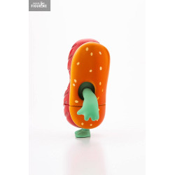 La figurine représente le petit bonhomme vert emblématique, dissimulé sous un gigantesque hot-dog rouge brillant, grillé avec soin et pris en sandwich dans un pain garni de graines. Le tout forme une tenue aussi savoureuse qu’improbable, fidèle à l’univers déjanté du jeu.