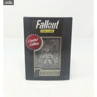 Réplique officielle Perk Card Perception en métal mesurant environ 7,5 x 5 centimètres. Le fabricant est FaNaTtiK.