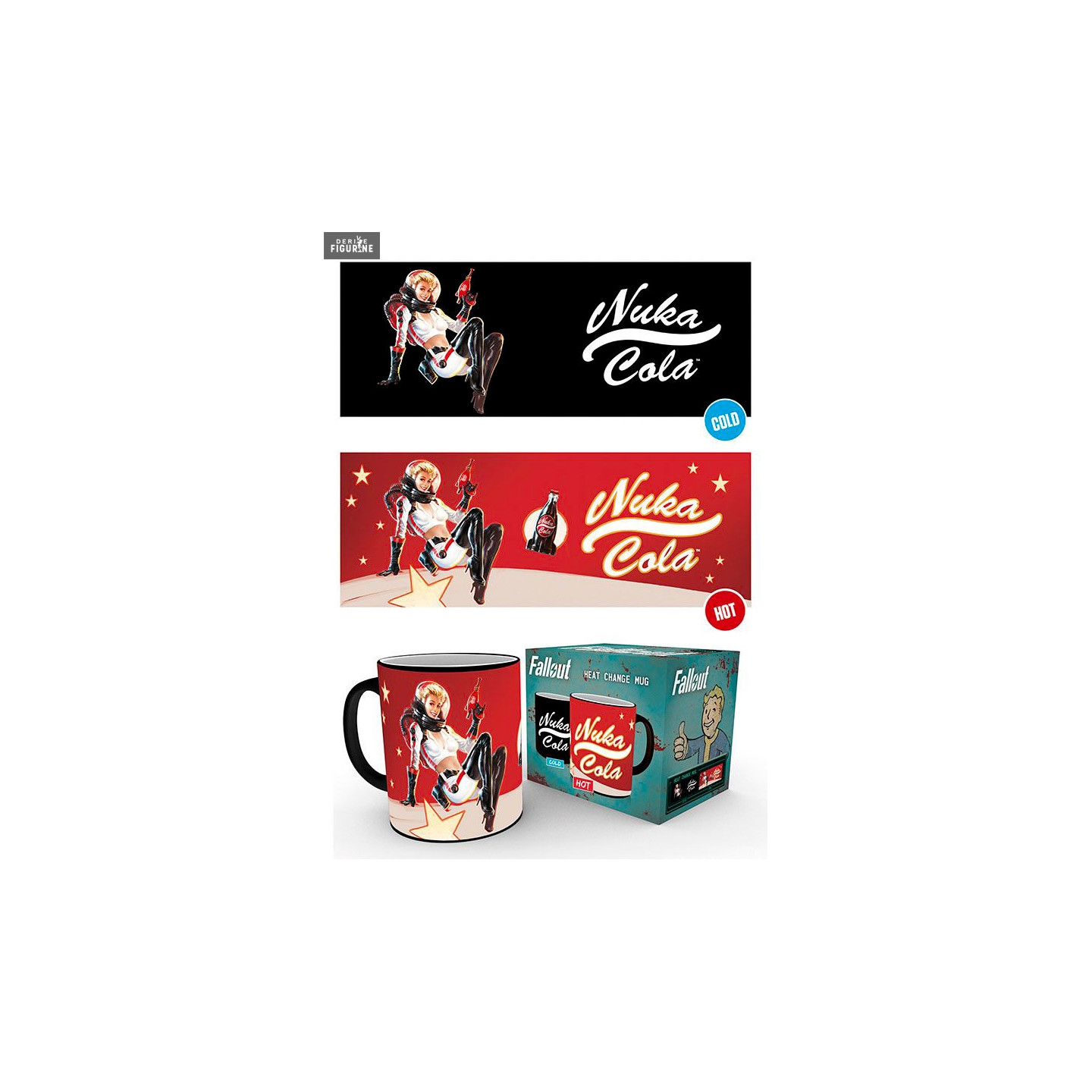 Dans le jeu vidéo Fallout, il y a une boisson bien connue... Il s'agit de la Nuka Cola et ce mug fait office de publicité pour la marque ! Froid, vous aurez seulement le logo et la jolie jeune femme tandis qu'avec du liquide chaud, la campagne marketing se dévoilera avec un sympathique paysage.