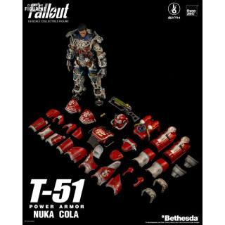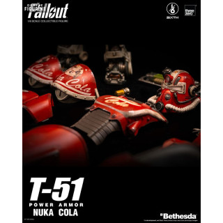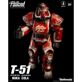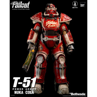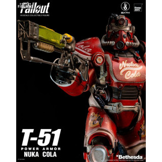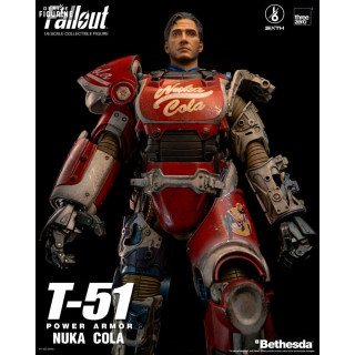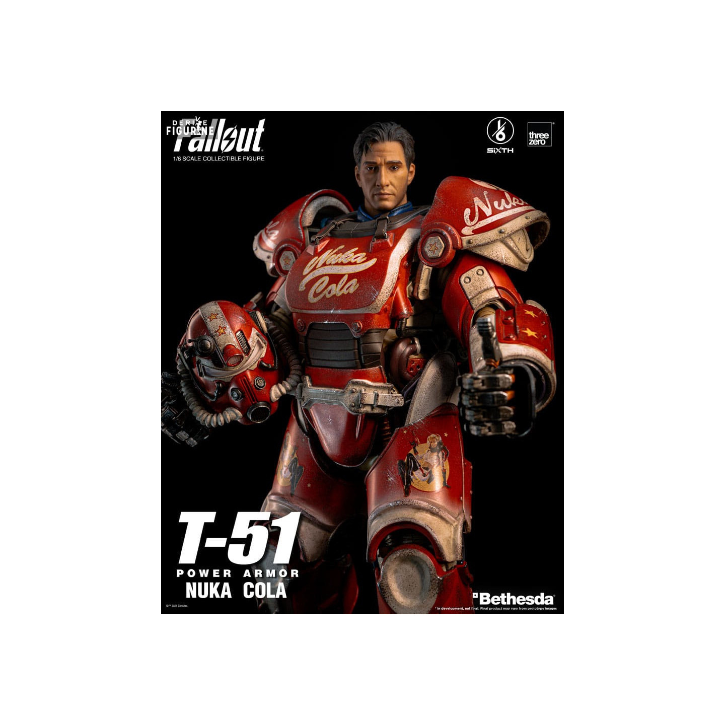 Figurine officielle de T-51 Power Armor, Nuka Cola mesurant environ 37 centimètres de haut, à l'échelle 1/6. Le fabricant est ThreeZero.