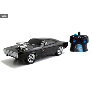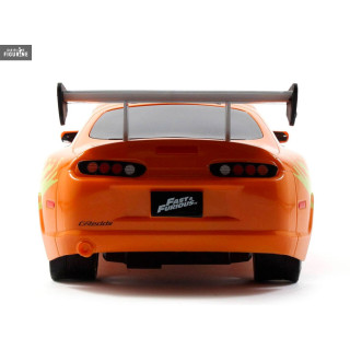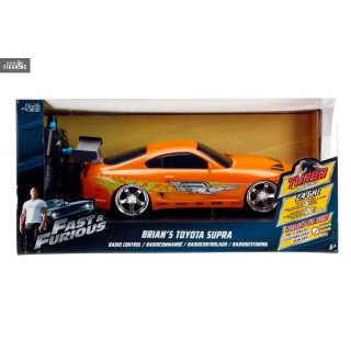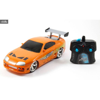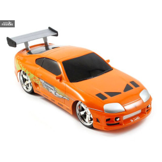 Voiture radiocommandée officielle au choix Brian's 1995 Toyota Supra ou Dom 's 1970 Dodge Charger R/T à l'échelle 1/16. 2.4 GHz, piles et câble USB incluses. Le fabricant est Jada Toys.