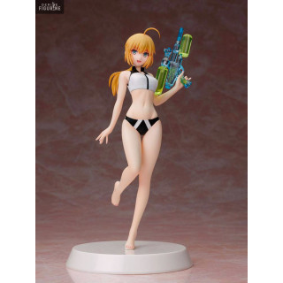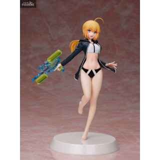 Nouvelle figurine de l'univers vidéoludique de Fate/Grand Order à faire son entrée dans la prestigieuse collection des reines de la plage de Our Treasure baptisée en VO Summer Queens. La petite nouvelle est la somptueuse jeune femme à la chevelure blonde, on parle d'Altria Pendragon et elle est dans sa classe Archer.