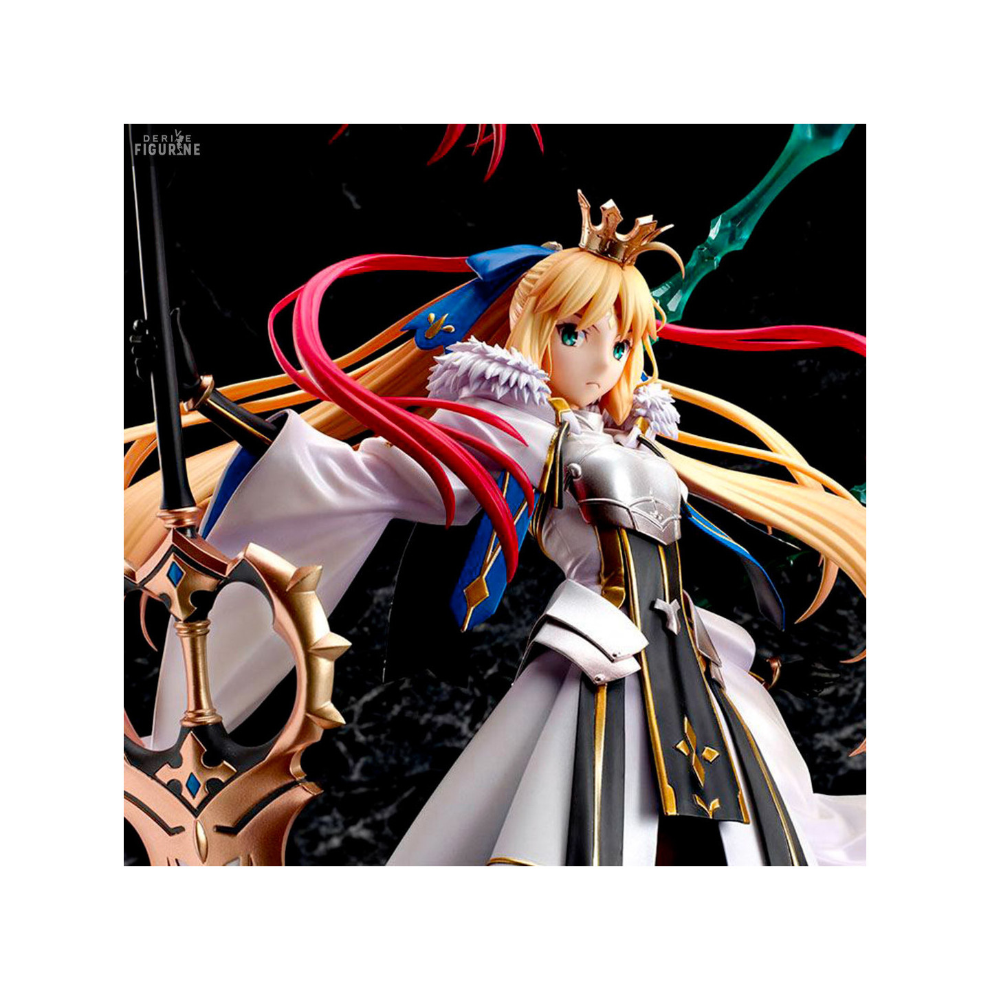 Disponible aux invocations de Fate/Grand Order, voici une figurine de la belle Altria Caster dans une réalisation où elle est en classe Caster et 3rd Ascension. Charismatique, imposante et plus belle que jamais, le rendu est tout bonnement incroyable et on adore le niveau de détails et les armes exposées avec goût qui apportent vraiment du charme à la statuette.