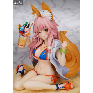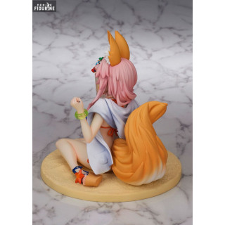 Tamamo no Mae, figure emblématique de l’univers Fate/Grand Order, est une Servant appartenant à la classe Caster ou parfois Lancer, selon ses incarnations. Inspirée d’une légendaire divinité renarde du folklore japonais, Tamamo no Mae est connue pour son apparence enchanteresse, sa personnalité espiègle et sa dévotion envers son Maître. Toujours joviale et pleine d'énergie, elle combine son charme naturel à de puissantes compétences magiques et martiales. Dans cette version estivale, Tamamo échange sa tenue habituelle pour un maillot de bain éclatant, révélant son côté ludique et détendu, tout en conservant son aura captivante.