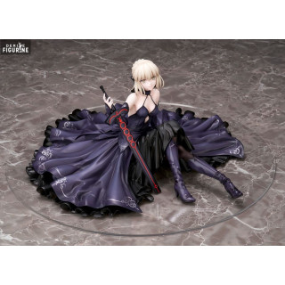 Cette figurine 1/7 signée Alter offre une interprétation sublime et raffinée de Saber Alter dans sa version Star of Twilight. Assise avec grâce sur sa somptueuse robe de soirée noire et violette, elle dégage une prestance souveraine. Les motifs élégants brodés sur le tissu et les plis fluides de sa robe ajoutent un réalisme saisissant. Son regard perçant et sa posture détendue, mais déterminée, reflètent parfaitement l’équilibre entre la noblesse et la noirceur du personnage.