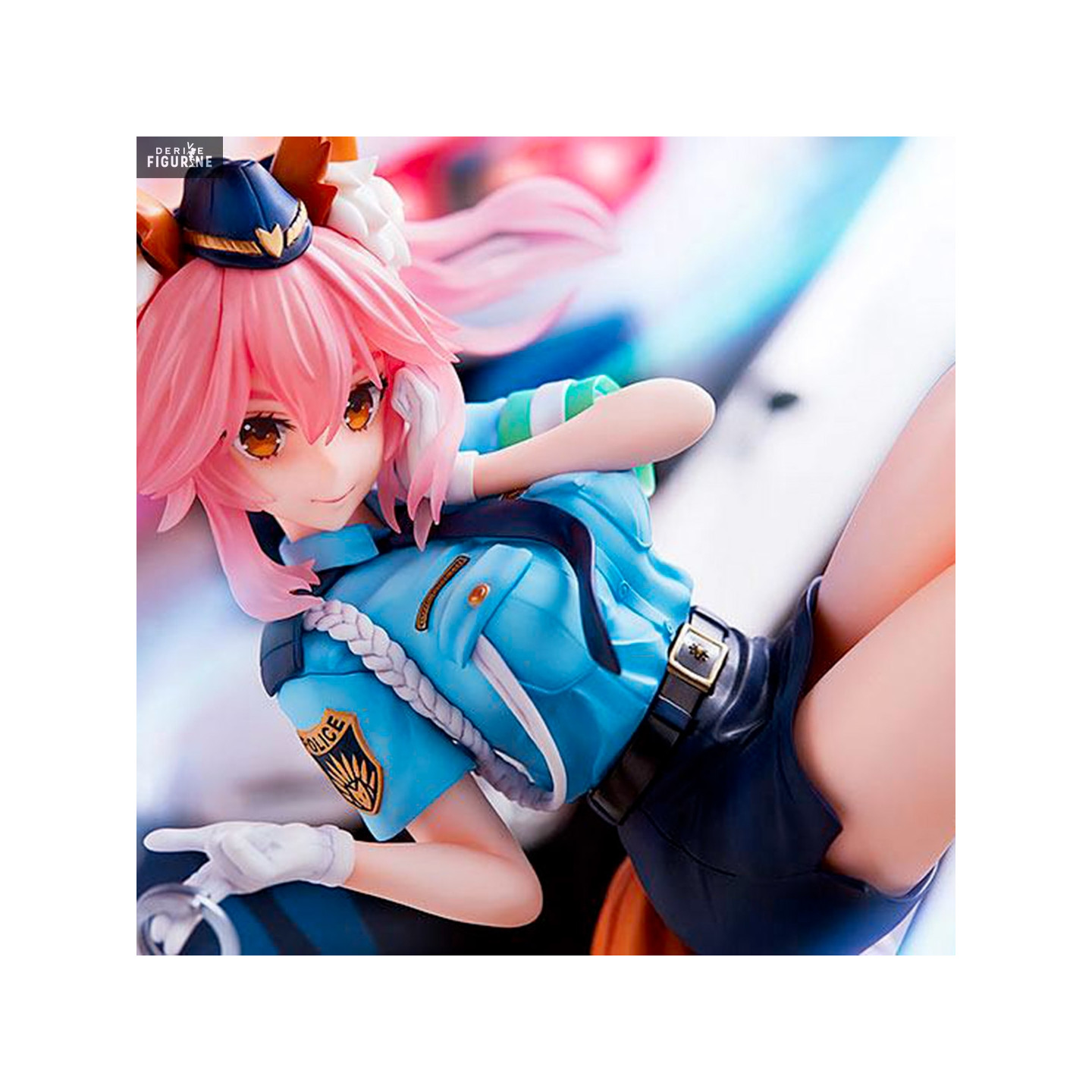 Figurine officielle de Tamamo no Mae, Version Police Fox en PVC mesurant environ 23 centimètres de haut, à l'échelle 1/7. Le fabricant est Phat! Company.