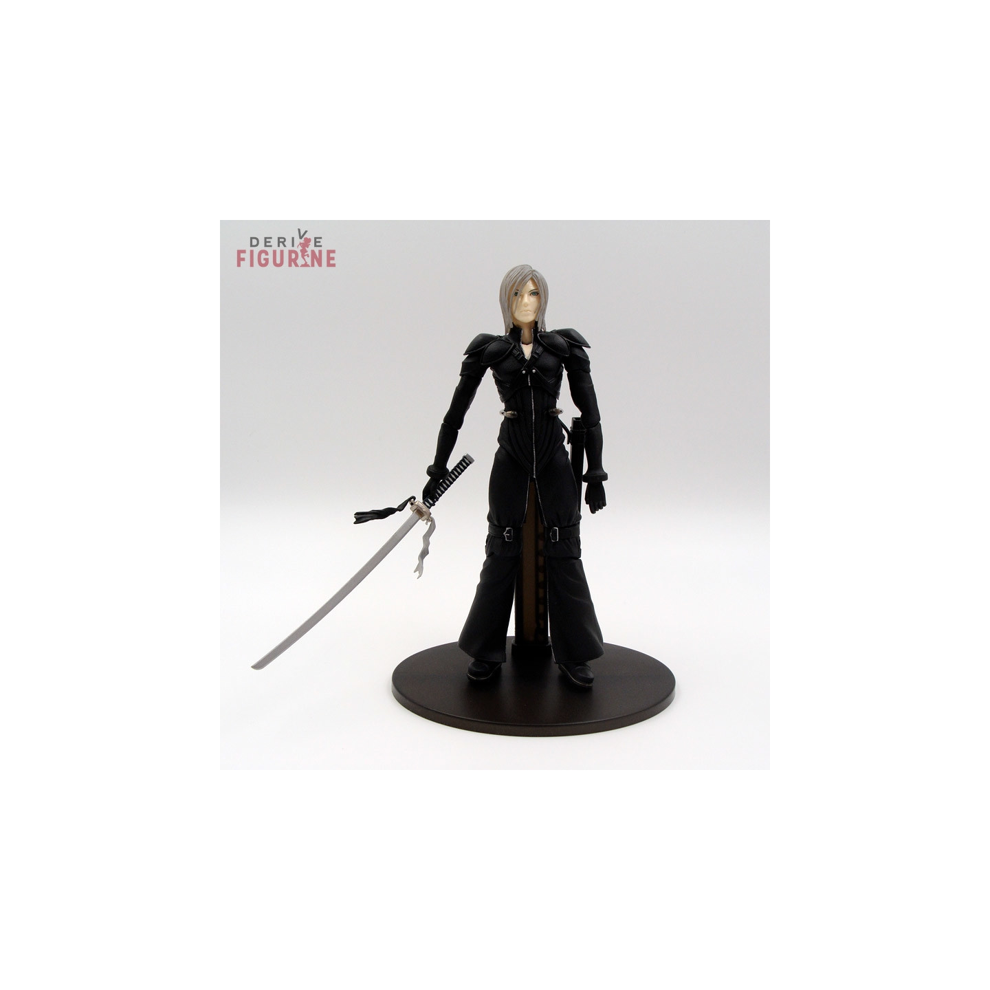 Figurine d'occasion et officielle de Kadaj en PVC d'environ 22 centimètres de haut. Kadaj est articulé et a tous ses accessoires : trois mains de rechange, son arme et le socle. Il s'agit d'un objet d'occasion en parfait état de la collection Play Arts. Le fabricant est Square Enix, vendu avec boîte en bon état.