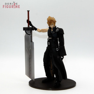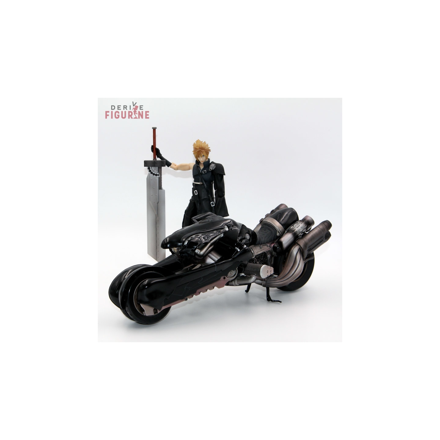 Figurines d'occasion et officielle comprenant Cloud Strife et la moto Fenrir en ABS/PVC. Cloud fait environ 20 centimètres et la moto, 30 de longueur. Il s'agit d'un objet d'occasion en bon état de la collection Play Arts. Le bras droit de Cloud est tout de même un peu fragilisé. Le fabricant est Square Enix, vendu avec boîte en très mauvais état.