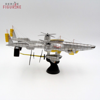 Figurine d'occasion et officielle du Highwind en Cold Cast/Résine d'environ 28 centimètres de long. Une pale de l'hélice et le picot pour la faire tenir ont été recollés. Il s'agit d'un objet d'occasion en parfait état. Le fabricant est Kotobukiya, vendu avec boîte en assez bon état.
