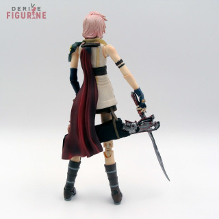 Figurine d'occasion et officielle de Lightning en ABS/PVC d'environ 28 centimètres de haut. Figurine articulée avec tous ses accessoires, à savoir des mains de rechange, deux armes et le socle. Il s'agit d'un objet d'occasion en parfait état de la collection Play Arts Kai. Le fabricant est Square Enix, vendu avec boîte en bon état.