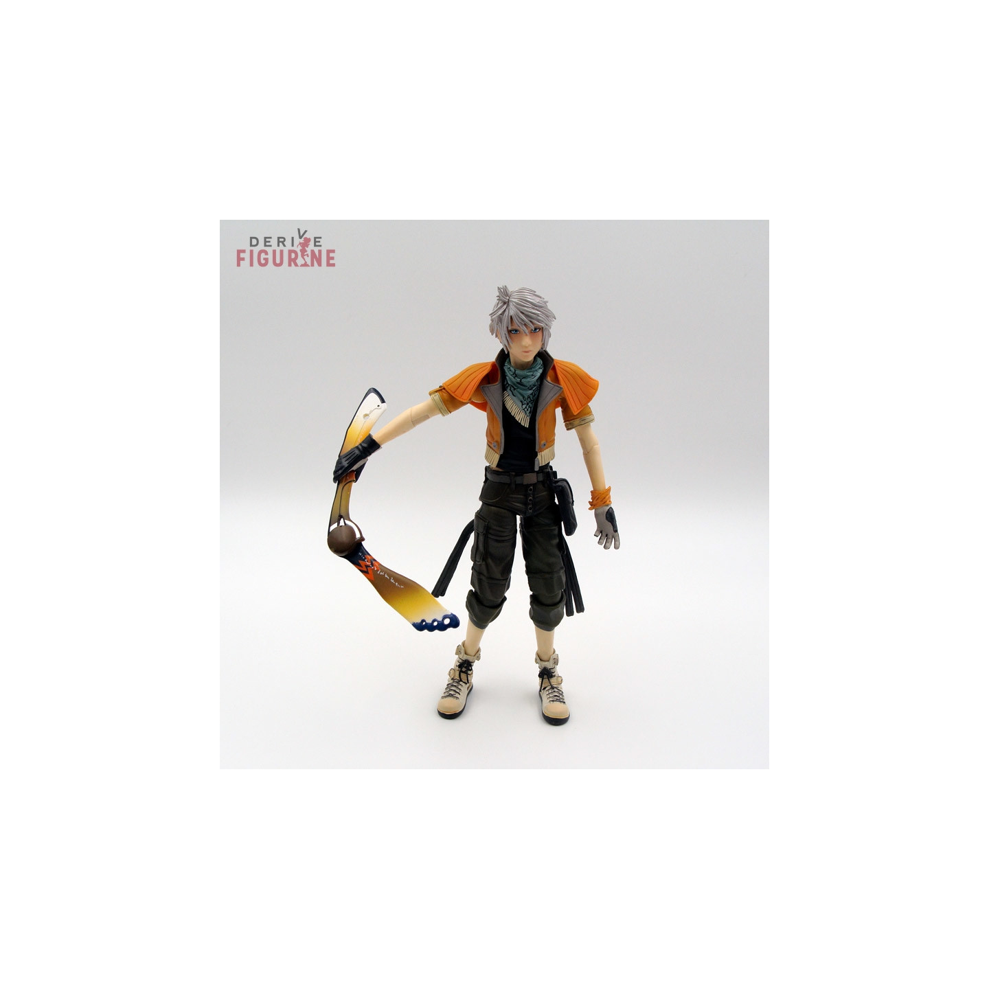 Figurine d'occasion et officielle de Hope Estheim en ABS/PVC d'environ 21,5 centimètres de haut. Elle est articulée et a tous ses accessoires : une main de rechange et l'arme. Il s'agit d'un objet d'occasion en parfait état de la collection Play Arts Kai. Le fabricant est Square Enix, vendu avec boîte en bon état mais légèrement déchirée sur le dessus.