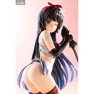 Le travail de sculpture signé Kotobukiya met l’accent sur les courbes gracieuses du personnage, ses longs cheveux noirs finement détaillés, et les contrastes de textures entre l’armure lustrée et les éléments textiles comme le ruban rouge ou les hautes chaussettes. L’attitude mi-timide mi-séduisante de Magatsuki renforce le caractère bishoujo-mecha propre à la série.