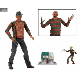 Voici une nouvelle figurine de Freddy Krueger, mais il n'est pas vendu seul puisque des mains et têtes interchangeables sont aussi dans la boîte, ainsi qu'un chapeau, une petite marionnette de Freddy et la maison de Elm Street. Alors pas mal pour le prix non ?