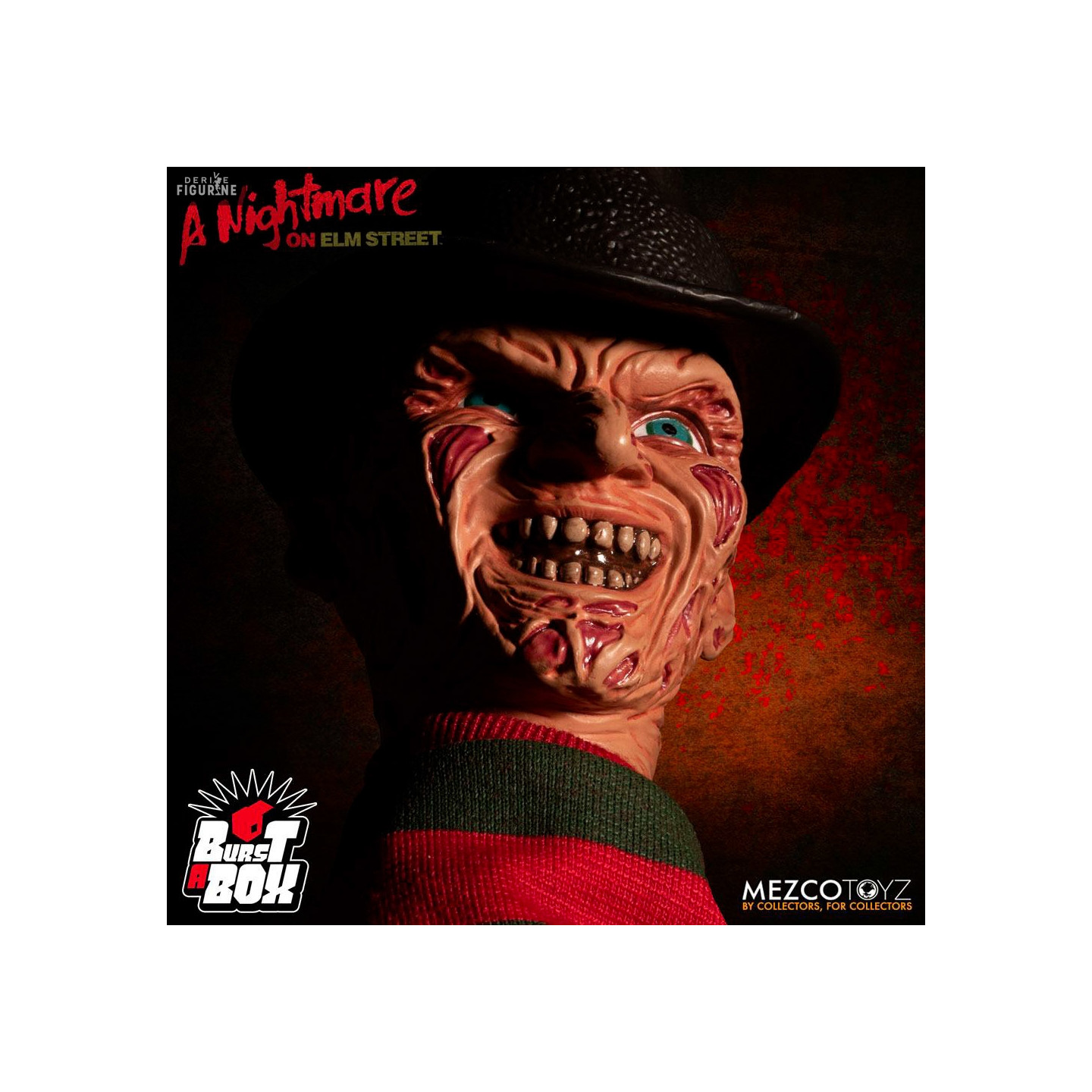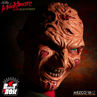Diable en boîte officiel de Freddy Krueger mesurant environ 36 centimètres de haut. Il est issu de la collection Burst-A-Box. Le fabricant est Mezco Toys.