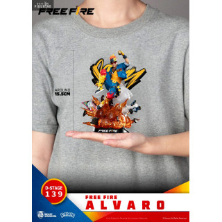 Free Fire est un battle royale avec bon nombre de personnages et la collection de figurines D-Stage commence avec le charismatique Alvaro. Il vient d'une famille militaire et c'est à 14 ans qu'il rejoint l'armée car il adore les explosifs. Ses abilités sont donc principalement dans l'art des explosifs mais dans les dommages à faire sur de grandes zones.