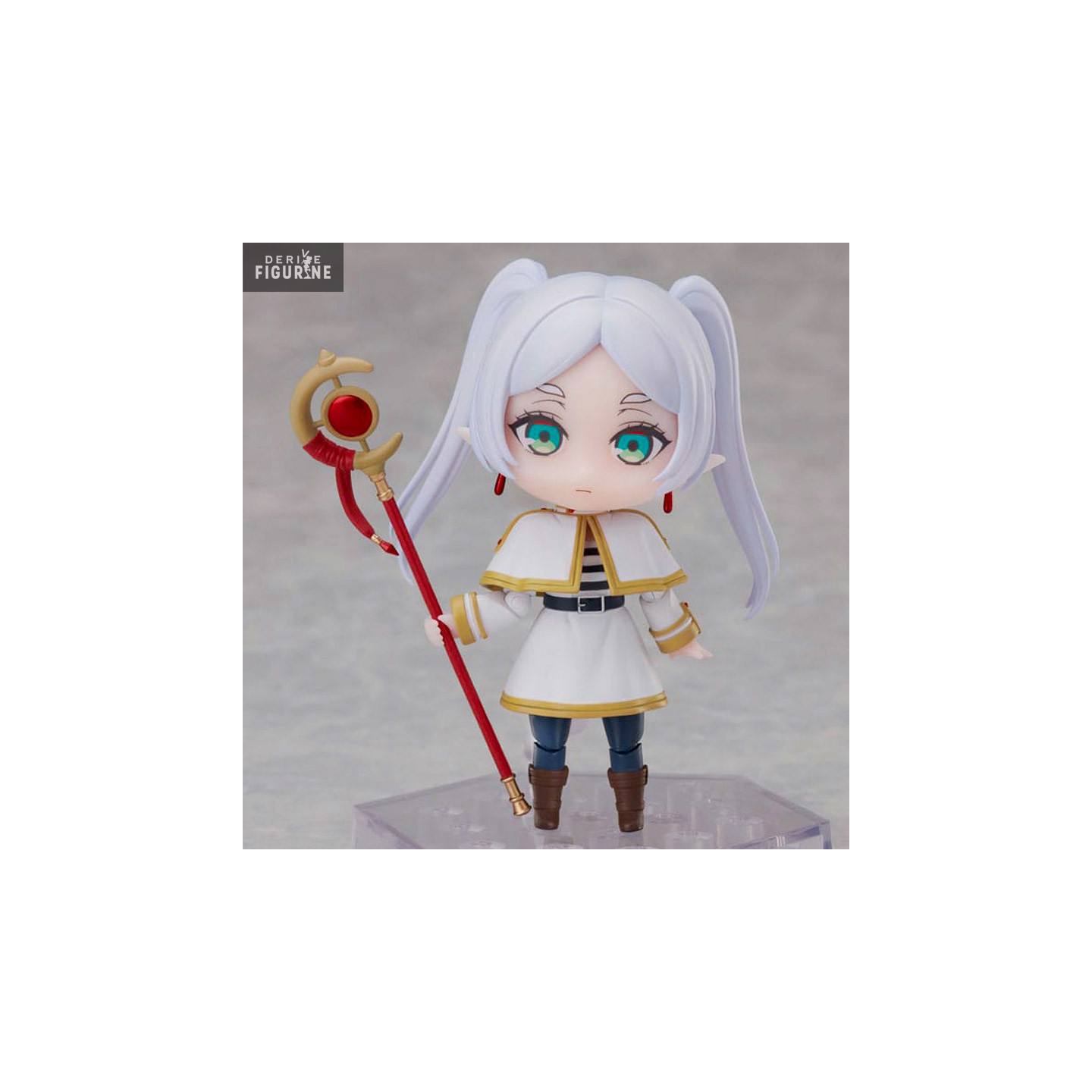 Figurine officielle de Frieren en PVC mesurant environ 9 centimètres de haut. Elle est issue de la collection Dform. Le fabricant est Elcoco.