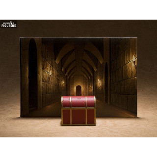 Mesurant environ 10 cm de haut, cette figurine en ABS et PVC est fabriquée par Good Smile Company avec une attention remarquable aux détails. La texture du coffre, les couleurs vibrantes et les éléments sculptés, comme les crocs menaçants et la langue en mouvement, recréent fidèlement l’esthétique du Mimic. En tant que Nendoroid, cette pièce intègre également des accessoires permettant de personnaliser la scène, comme un décor d’exploration de donjon pour immerger pleinement le Mimic dans son environnement.