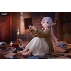 Frieren, personnage central du manga Sousou no Frieren, est une elfe au long passé marqué par ses aventures héroïques. Bien que puissante et sage, elle est également connue pour sa personnalité contemplative et introspective. Cette figurine la représente assise, un livre ancien à la main, symbole de sa quête constante de savoir et de sa nature studieuse.