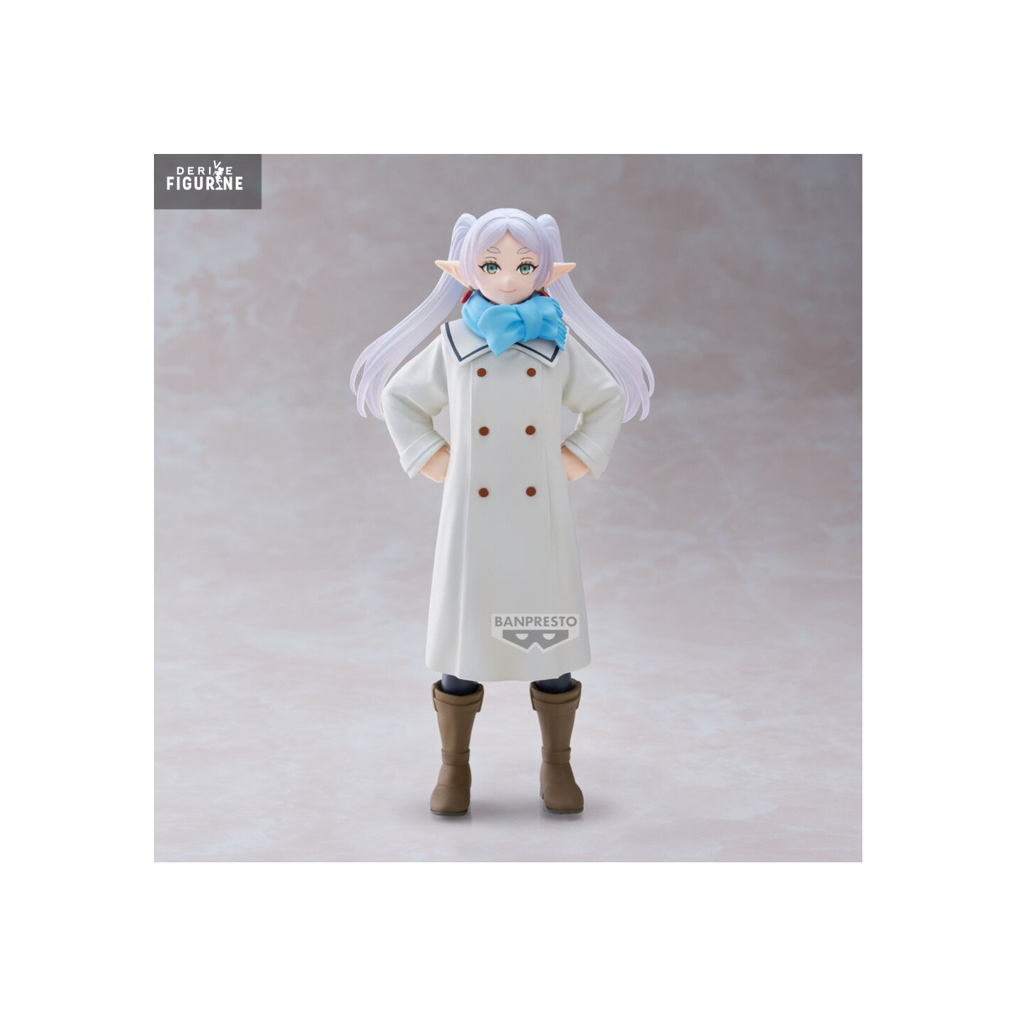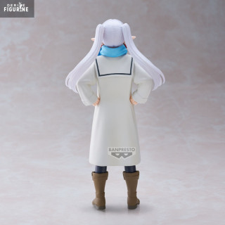 Figurine officielle de Frieren en PVC mesurant environ 20 centimètres de haut. Le fabricant est Banpresto.