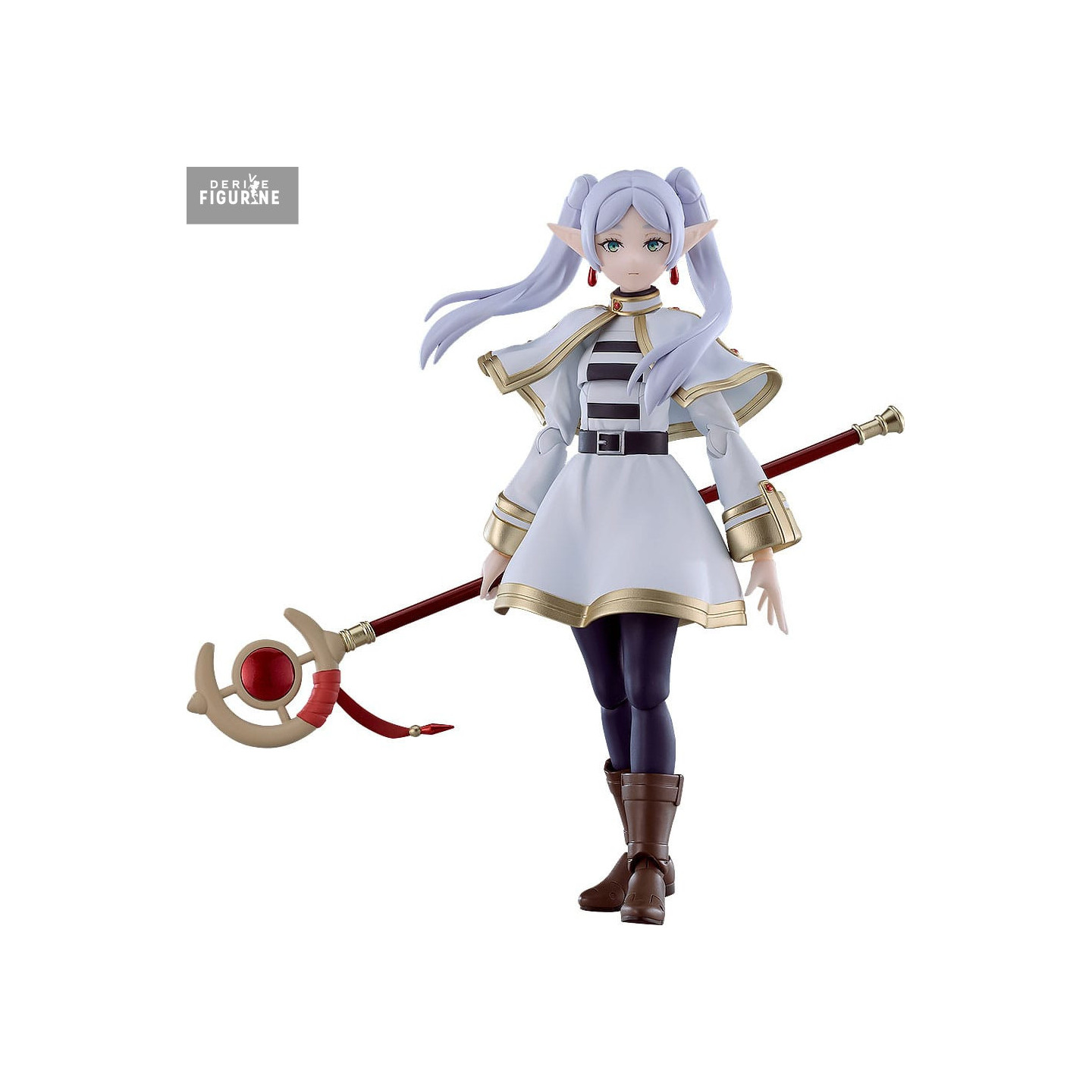 La Figma de Frieren transpose la magicienne elfe du manga Frieren: Beyond Journey’s End en une figurine articulée d’environ 13 cm de haut. Elle arbore son costume iconique : robe blanche à empiècements noirs et dorés, bottes marron, et longue chevelure argentée attachée en deux couettes souples.