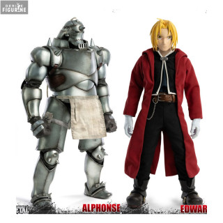 Figurines officielles de Edward (~25 cm) & Alphonse (~37 cm), à l'échelle 1/6. Alphonse s'éclaire et nécessite 3 piles AG1 non fournies. Le fabricant est ThreeZero.