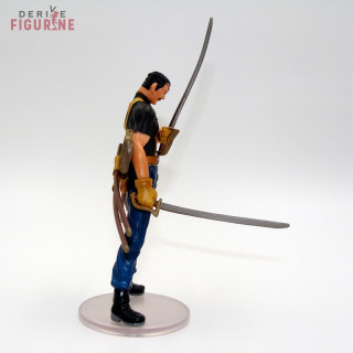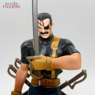 Figurine d'occasion et officielle de King Bradley en ABS/PVC qui mesure environ 16 centimètres de haut. La tête baissée et une épée dans chaque main, Bradley se concentre pour le combat à venir. Vu le nombre d'armes qu'il possède, mieux vaut rester sur vos gardes. Il s'agit d'un objet d'occasion en parfait état. Le fabricant est Square Enix, vendu sans boîte.