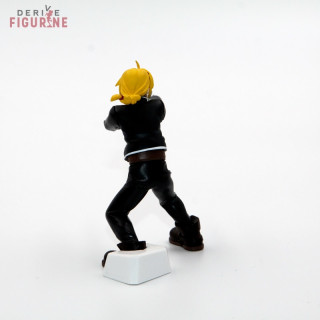 Figurine d'occasion et officielle d'Edward Elric en PVC qui mesure environ 8 centimètres de haut. Au vu de sa position et de la lame qui est au bout de son bras droit, Edward est prêt au combat. Il s'agit d'un objet d'occasion en parfait état. Le fabricant est Bandai, vendu sans boîte.