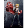 Nous retrouvons Edward Elric, sa veste d’alchimiste flottant dans le vent et complètement déchirée. Il est vendu avec plusieurs accessoires comme des visages interchangeables et un porte-clés qui représente la porte de la vérité.