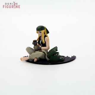 Figurines d'occasion et officielles d'Edward Elric, King Bradley, Scar et Winry Rockbell en ABS/PVC d'environ 10 centimètres de haut. Les figurines peuvent être assemblées grâce aux différents socles. Il s'agit d'un objet d'occasion en parfait état de la collection Trading Arts. Le fabricant est Square Enix, vendu avec boîte en assez bon état.