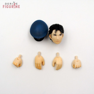 Roy Mustang possède la totalité de ses accessoires : une tête interchangeable, deux paires de main, sa casquette et son socle. L’alchimiste de flammes est prêt pour combattre malgré ce petit souci. Attention qu'il ne mette pas le feu chez vous.