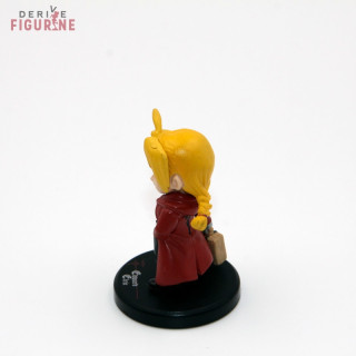 Gashapon d'occasion et officiel d'Edward Elric en PVC qui mesure environ 5 centimètres de haut. Edward porte sa célèbre veste rouge ainsi qu'une valise dans la main droite. Il s'agit d'un objet d'occasion qui possède une marque d'usage sur le front. Le fabricant est Bandai, vendu sans boîte.