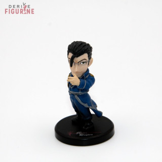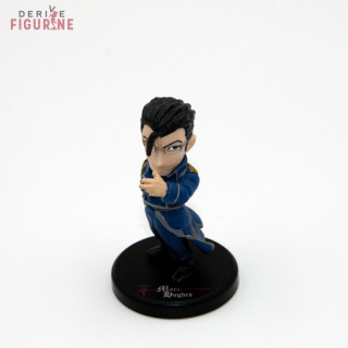 Gashapon d'occasion et officiel de Maes Hughes en PVC qui mesure environ 5,5 centimètres de haut. La figurine possède de nombreux détails comme ses lunettes et les poils de sa barbe. Il s'agit d'un objet d'occasion en parfait état. Le fabricant est Bandai, vendu sans boîte.