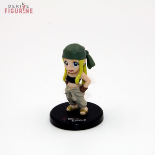 Gashapon d'occasion et officiel de Winry Rockbell en PVC qui mesure environ 4,5 centimètres de haut. Notre chère Winry se tient fièrement debout, les mains sur les hanches. Il s'agit d'un objet d'occasion en parfait état. Le fabricant est Bandai, vendu sans boîte.