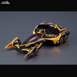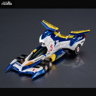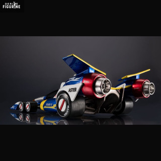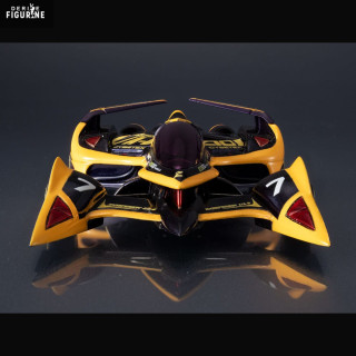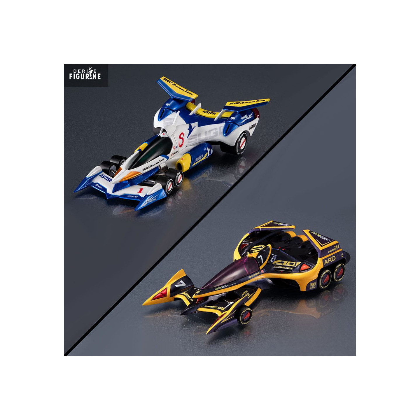 Le Super Asurada AKF-11, avec ses lignes blanches et bleues et son “S” rouge emblématique, reste le symbole ultime de la technologie de pointe dans la série. À ses côtés, le Exssperion Z/A-8 en noir et jaune joue la carte de la vitesse agressive, avec un design racé et une finition brillante. Les deux modèles s’affichent comme s’ils étaient prêts à foncer sur la piste, miniatures peut-être, mais redoutablement fidèles.