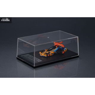Basée sur l’image fournie, cette réplique miniature met en valeur un châssis aux couleurs vives — jaune et bleu — surmonté d’éléments orange distinctifs. L’avant fuselé, le cockpit central noir et les ailerons arrière imposants soulignent la nature compétitive de la machine.