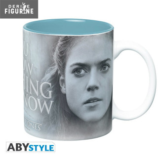Retrouvez sur ce mug Jon Snow et Ygritte la sauvageonne, les amants maudits dans Game of Thrones. En effet, Jon Snow étant un corbeau et Ygritte une sauvageonne, leur destin ne sont pas censés se mêler, et pourtant...