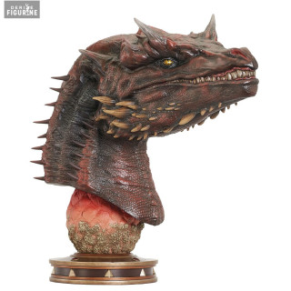 Caraxes, connu sous le nom de Blood Wyrm, est l'un des dragons les plus redoutables de l'univers "Game of Thrones", plus spécifiquement de la série "House of the Dragon". Ce buste capture fidèlement les détails féroces et majestueux de Caraxes, avec ses écailles détaillées, ses cornes menaçantes et ses yeux perçants. La qualité de la sculpture et de la peinture met en avant chaque aspect terrifiant de ce dragon emblématique.