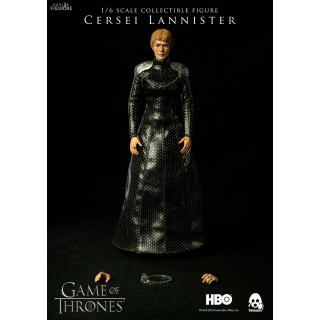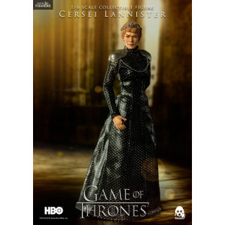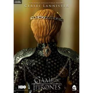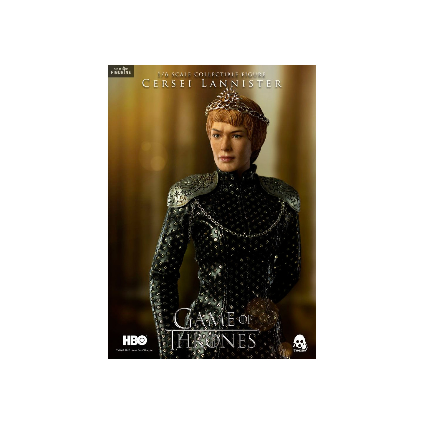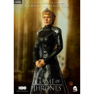 Figurine officielle de Cersei Lannister mesurant environ 28 centimètres de haut, à l'échelle 1/6. Le fabricant est Threezero.