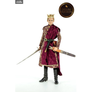 Figurine officielle de Joffrey Baratheon au choix entre la version Classique ou Deluxe mesurant environ 29 centimètres de haut, à l'échelle 1/6. Le fabricant est ThreeZero.