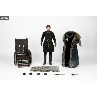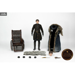 Après avoir été poussé dans le vide par Jaime Lannister, souhaitant garder secrète la relation incestueuse qu'il a avec sa sœur Cersei Lannister, Brandon Stark est en fauteuil roulant. Il porte des vêtements en tissu, ainsi qu'une dague et des mains de rechange. Si vous choisissez la version Deluxe, vous aurez en plus un visage avec les yeux entièrement blancs.