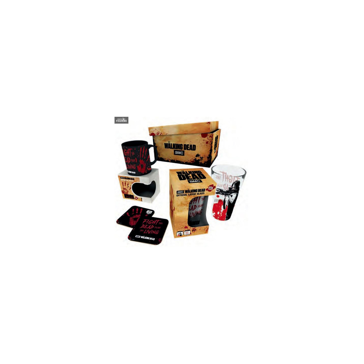 Le coffret cadeau appelé Bloody Hand est l'article idéal pour faire plaisir à un fan de la série ou du comics The Walking Dead. On y retrouve quatre produits à savoir un mug, un verre et deux dessous de verre. En plus, on a droit à une très jolie boîte cadeau aux couleurs de la série.