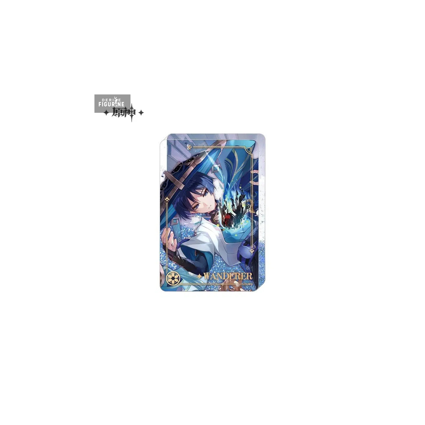 Cet ornement en acrylique propose une illustration riche en détails, où l’on retrouve Wanderer dans une pose aérienne, flottant dans une lumière bleutée, la main tendue comme pour manipuler le vent. Son chapeau emblématique à large bord, sa tenue traditionnelle modernisée et ses yeux perçants sont représentés avec soin. L’arrière-plan scintillant ajoute une dimension magique à l’ensemble.