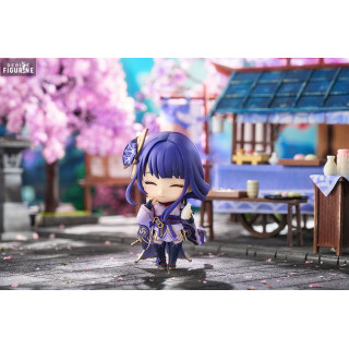 Figurine officielle de Raiden Shogun en PVC mesurant environ 10 centimètres de haut. Elle est issue de la collection Nendoroid. Le fabricant est Good Smile Company.