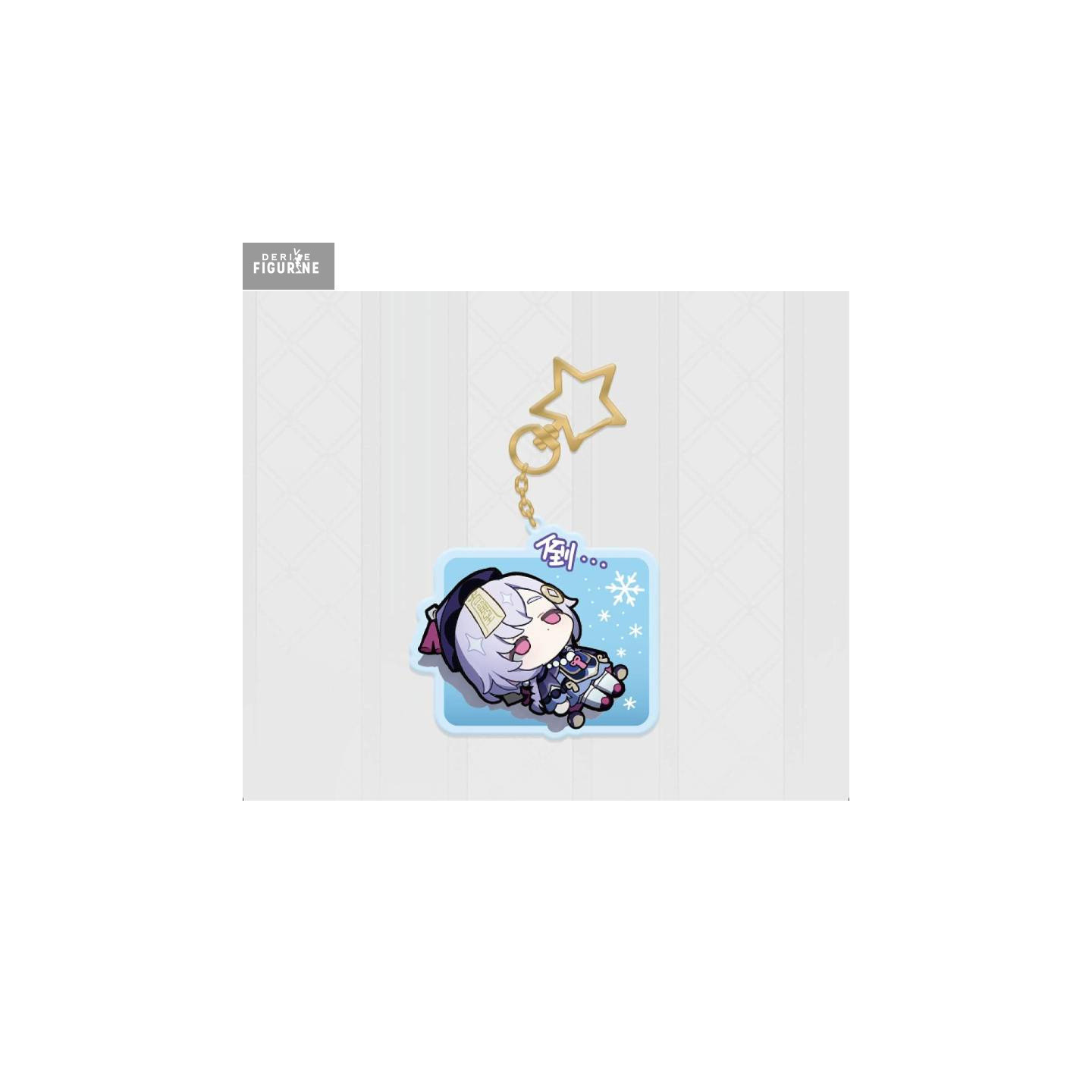Ce porte-clés officiel, issu de la série Q Version Sticker Series, met en scène Qiqi dans une version chibi irrésistible. Fabriqué par MiHoYo, il est conçu en acrylique de haute qualité et mesure environ 9 centimètres de haut. Le design montre Qiqi allongée, accompagnée de flocons de neige et d'une expression adorablement endormie, capturant parfaitement son caractère rêveur. Avec un crochet en forme d'étoile dorée pour une touche élégante, ce porte-clés est à la fois un accessoire pratique et un bel objet de collection. Idéal pour personnaliser vos clés, sacs ou accessoires, ce produit est un incontournable pour tous les fans de Genshin Impact.