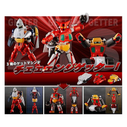 Figurines officielles de Getter Robo mesurant environ 12 centimètres de haut. Elles sont issues de la collection Dynamic Change. Le fabricant est FREEing.
