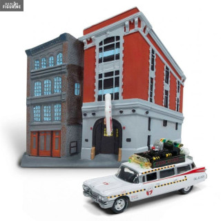 Réplique officielle de la Cadillac 1959 et du Firehouse en die cast et plastique injecté, à l'échelle 1/64. Le fabricant est Mattel (Hot Wheels).