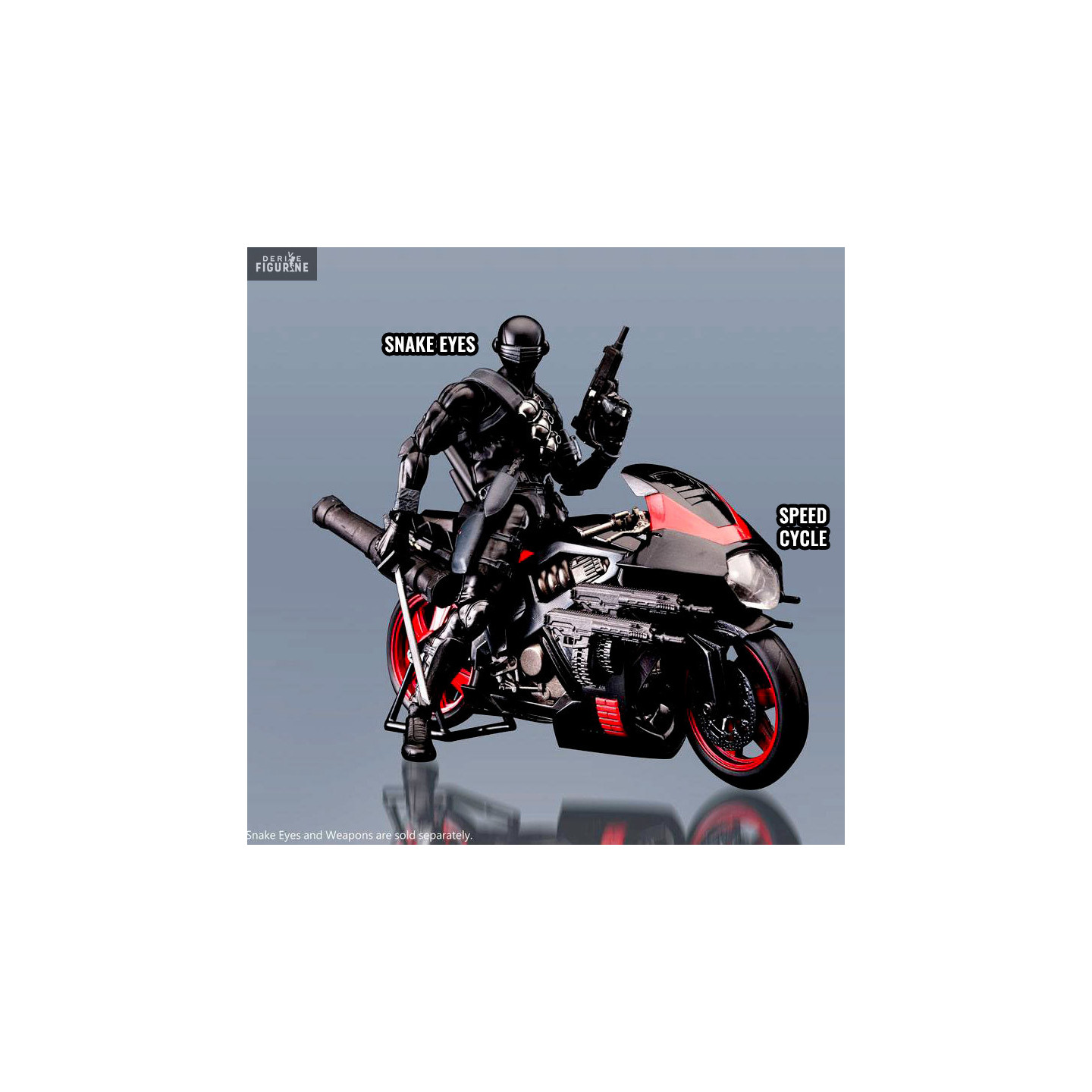 Figurine officielle au choix entre Snake Eyes (~ 13 cm) ou Speed Cycle (~ 15 cm) en plastique. Elle est issue de la collection Furai Model Plastic Model Kit. Le fabricant est Flame Toys.