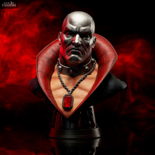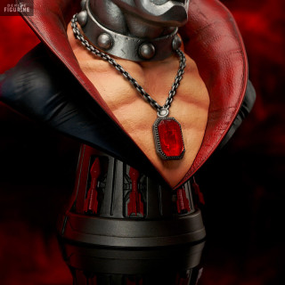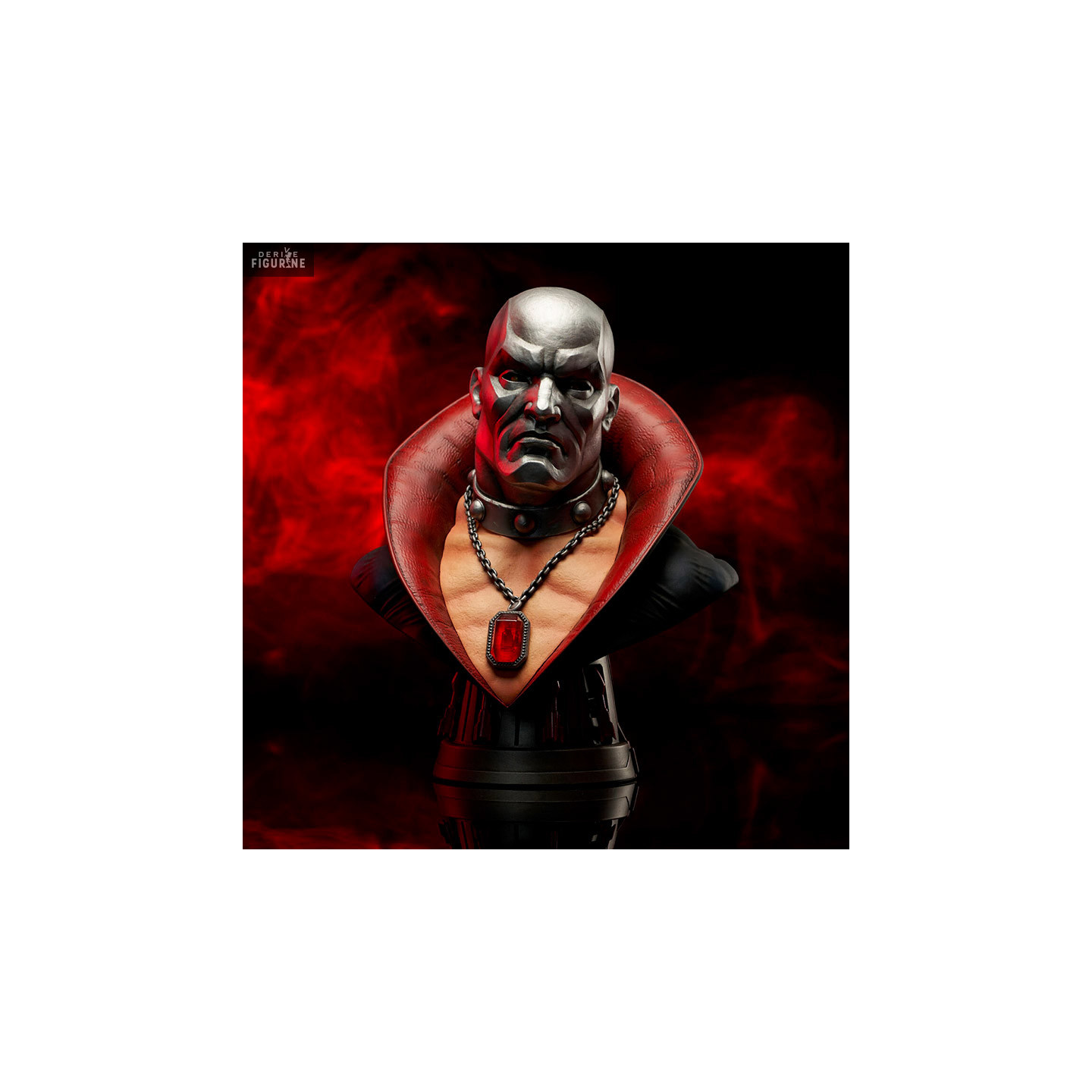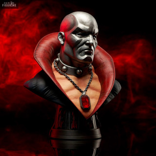 Buste officiel de Destro en résine mesurant environ 25 centimètres de haut, à l'échelle 1/2. Il est issu de la collection Legends in 3D. Le fabricant est Diamond Select.