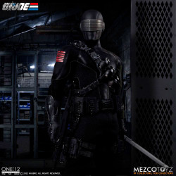 Figurine officielle de Snake Eyes mesurant environ 17 centimètres de haut. Le fabricant est Mezco Toys.