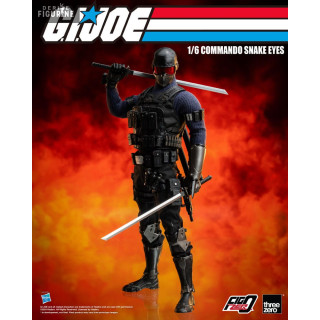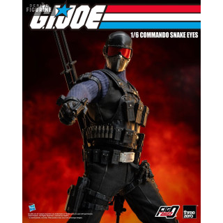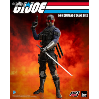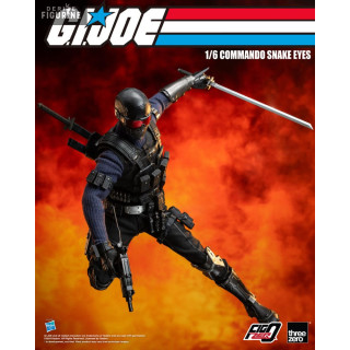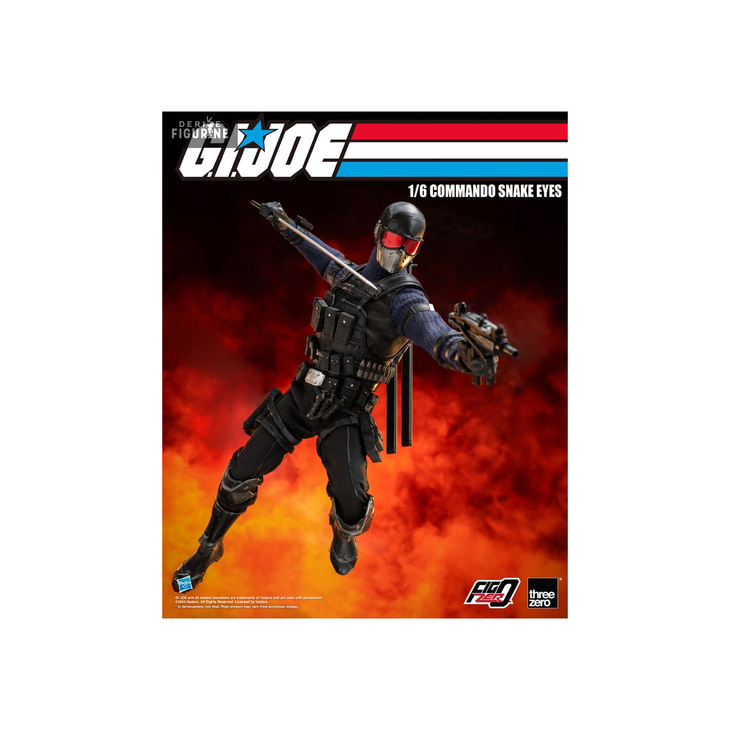 Figurine officielle de Commando Snake Eyes mesurant environ 30 centimètres de haut, à l'échelle 1/6. Elle est issue de la collection FigZero. Le fabricant est ThreeZero.